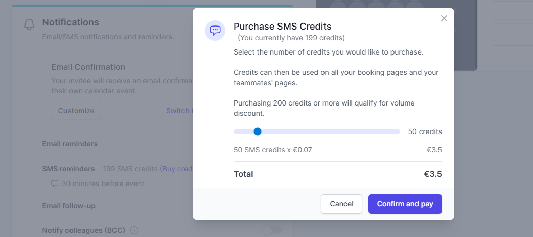 - Credits can be used across all your booking pages and your teammates’ pages.