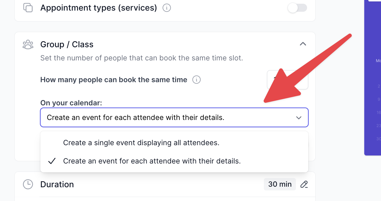 - Événement distinct par participant: vous recevrez un événement de calendrier pour chaque personne qui réserve.